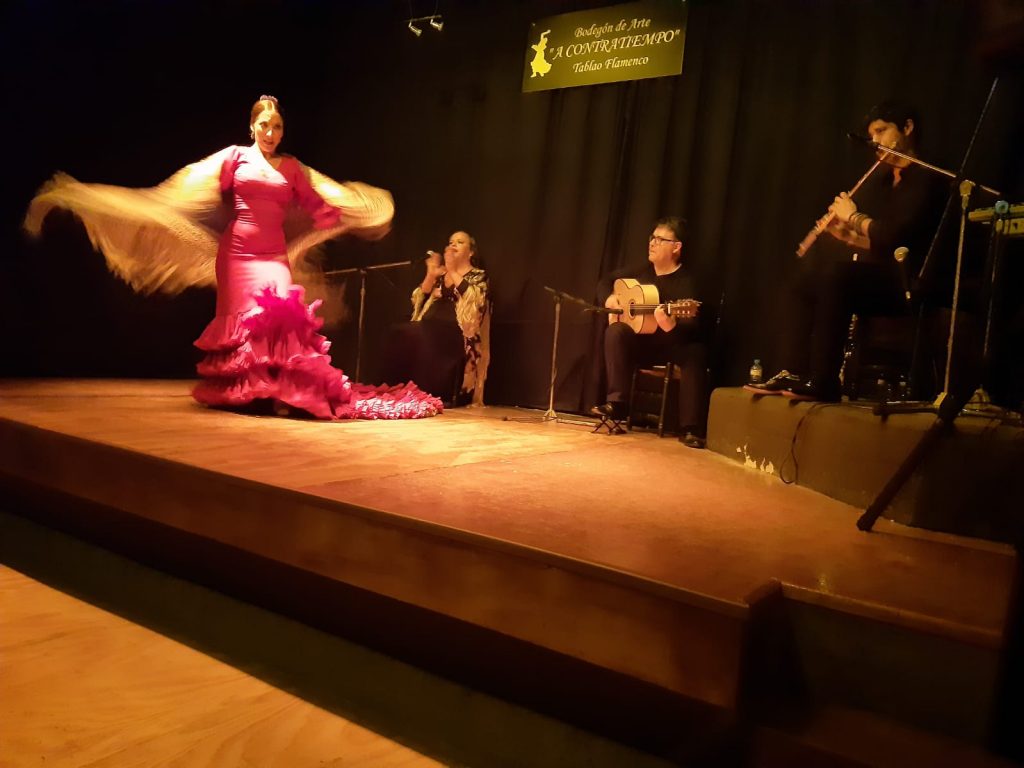 Baile: Raquel Villegas y Noelia Vilches. Cante: Ana Gómez. Flauta travesera y armónica: Diego Villegas. Guitarra: Niño Manuel. Lugar: Bodegón A Contratiempo de Sanlúcar de Barrameda (Cádiz). Día: Viernes, 18 de junio de 2021. Aforo: Lleno.