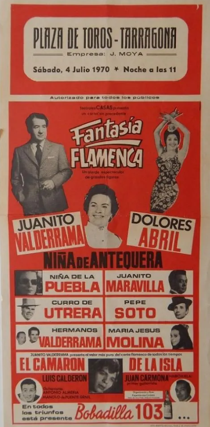 Vayamos ahora a sus discos. Fue muchísimo lo que grabó como copla aflamencada, muchas veces con orquesta y otros con sólo guitarra. No voy a entrar en esas grabaciones y me limitaré a señalar que entre ellas hubo una muy popular, titulada Mi perro, que la gente de mi quinta seguro que recuerda. También grabó cosas estrictamente flamencas, acompañada, por lo general, por dos guitarristas sevillanos: cuando no tocaba Antonio Peana, es porque lo hacía Pepe Martínez. No fue larga en repertorio y los estilos más jondos (tonás, seguiriyas, soleares) ni los tocaba. Su voz la inclinaba hacia otras cosas: milongas, colombianas, serranas rematadas con el verdial granadino, alegrías, granaínas y fandangos, muchos fandangos. Llama la atención que, siendo de la provincia de Málaga, no solía cantar por malagueñas. Por el contrario, era una magnífica tarantera, lo que podría explicarse por su crianza en tierras de Jaén.