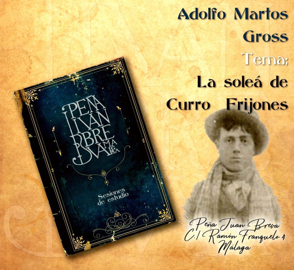 La Peña Juan Breva de Málaga acoge hoy (16.00 horas), como cada martes, una sesión de estudio, en este caso con Adolfo Martos como ponente y con el siguiente asunto, ‘La soleá de Curro Frijones‘’.