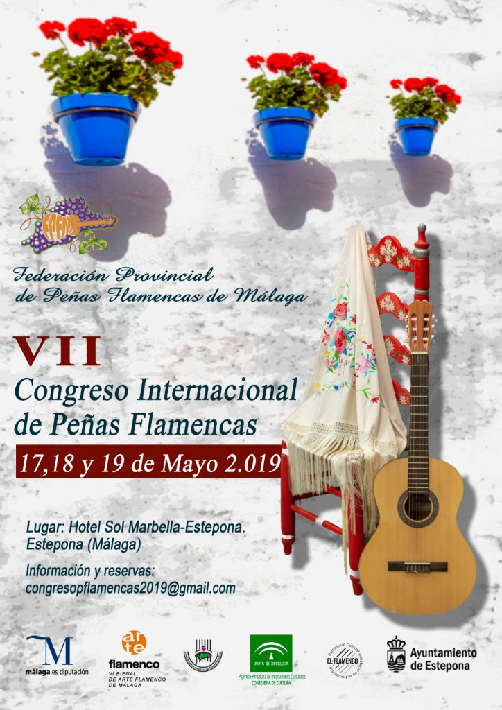 El VII Congreso Internacional de Peñas Flamencas, organizado por la Federación Provincial de Peñas Flamencas de Málaga con la colaboración de la Confederación Andaluza de Peñas Flamencas, la Diputación de Málaga, el Ayuntamiento de Estepona y la Junta de Andalucía, se celebrará los días 17, 18 y 19 de mayo en el Hotel Sol Marbella-Estepona de la localidad malagueña de Estepona y contará con las actuaciones de Alfredo Tejada, Guillermo Cano, Manuel de Angustias, al cante; Chaparro de Málaga y Paco Javier Jimeno, al toque; y Úrsula Moreno, al baile.