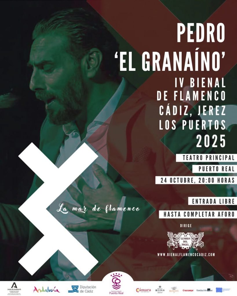 En Puerto Real, la cita estelar es con Pedro El Granaíno, acompañado por Patrocinio Hijo, al toque. Será el 24 de octubre a las 20.00 horas en el Teatro Principal de Puerto Real. La entrada es libre hasta completar el aforo.