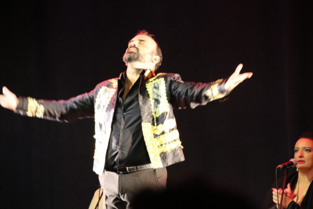 Ya en el tramo final, otro dúo flamenquísimo. Vanesa Fernández se pone en la piel de La Paquera, «que tenía un cañón en la garganta», y Abel Jiménez en la de Parrilla de Jerez, a la sonanta. La cantaora malagueña exhibe su poderío por bulerías.