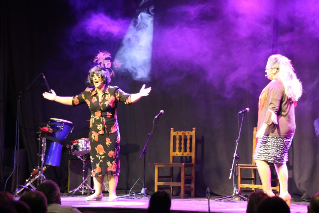 Emergen de entre el público las cantaoras Virginia Gámez (Carmen) y María Almendro (María), caracterizadas como entrañables abuelas, que ejercen como maestras de ceremonias con diálogos hilarantes y presentaciones didácticas.