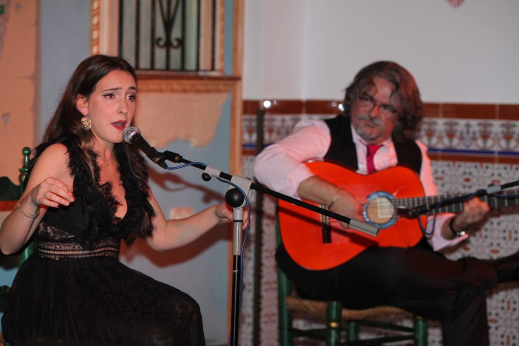 Comenzó la linarense con una vidalita que interpretó con gusto y saber; finalizada y antes de comenzar su segundo cante por alegrías, dirigió unas palabras de agradecimiento a los asistentes por su compromiso con el flamenco. Las interpretó con compás y bravura, sin esconderse, señal inequívoca de la que ofrece su cante con generosidad y entrega valiente.