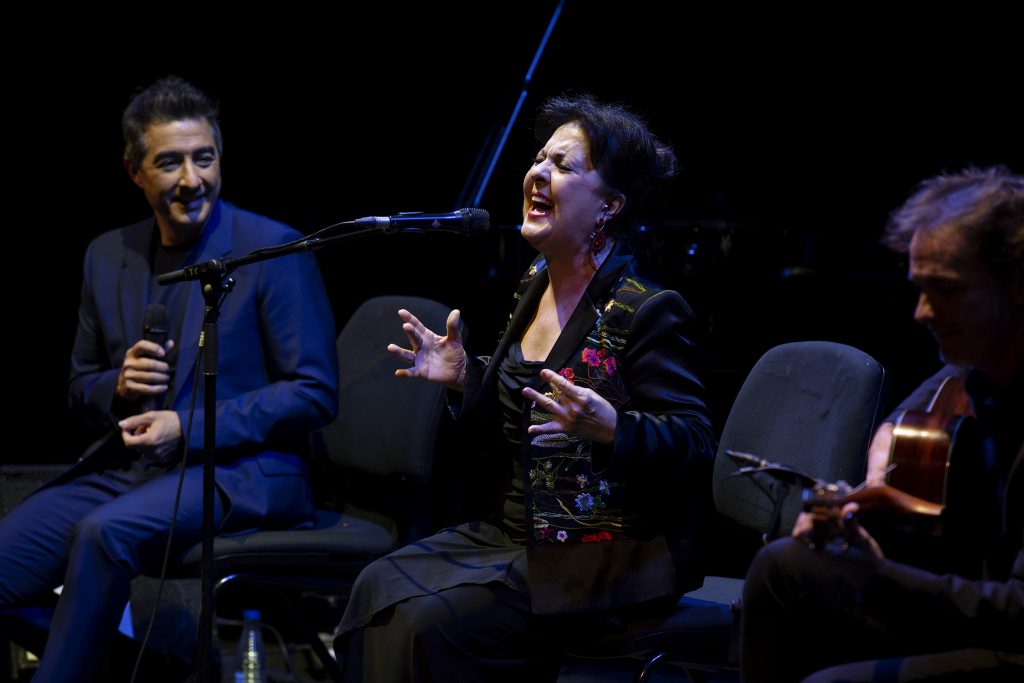 Y a continuación, el sabor de Cádiz en Toma este puñal dorao, la cantiña de La Mejorana. Su voz, llena de matices y tonalidades, junto a su personal y versátil estilo, acompañada sólo por el piano de Pablo Suárez, sirve de homenaje a Enrique Morente con La leyenda del tiempo, del poeta granadino. Y es que como es sabido: “El sueño va sobre el tiempo, flotando como un velero. Nadie puede abrir semillas en el corazón del sueño…”