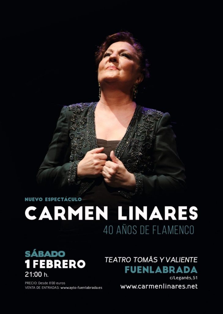 Carmen Linares abre hoy (21.00 horas) las XXXVI Jornadas Flamencas de Fuenlabrada, en las que también actuarán mañana Israel Fernández, Dani de Morón y Gregorio Moya. El ciclo madrileño, que se celebra en el Teatro Tomás y Valiente, está dedicado en esta edición al añorado Pepe de la Matrona.