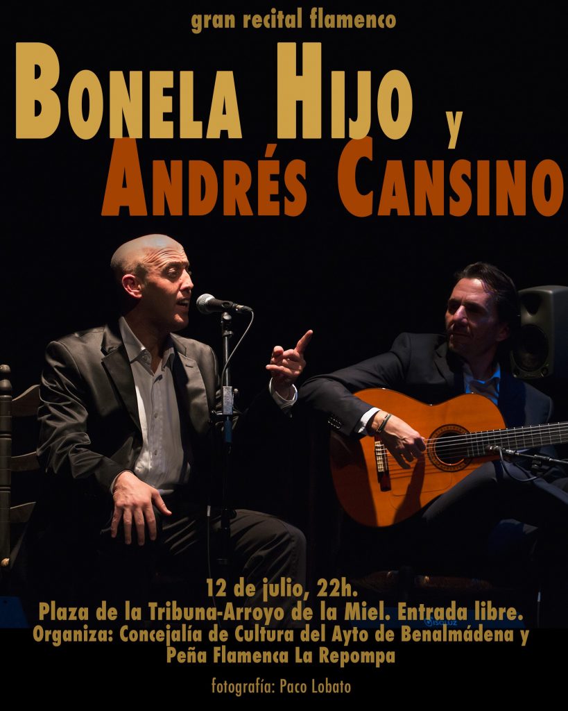 El Ciclo ‘Flamenco en la calle’, que abrió Luisa Chicano la pasada semana y que se celebra en Benalmádena durante los meses de julio y agosto, depara mañana un recital de Bonela Hijo con Andrés Cansino a la guitarra. La cita es en la Plaza de la Tribuna de Arroyo de la Miel a las 22.00 horas. La entrada es libre.
