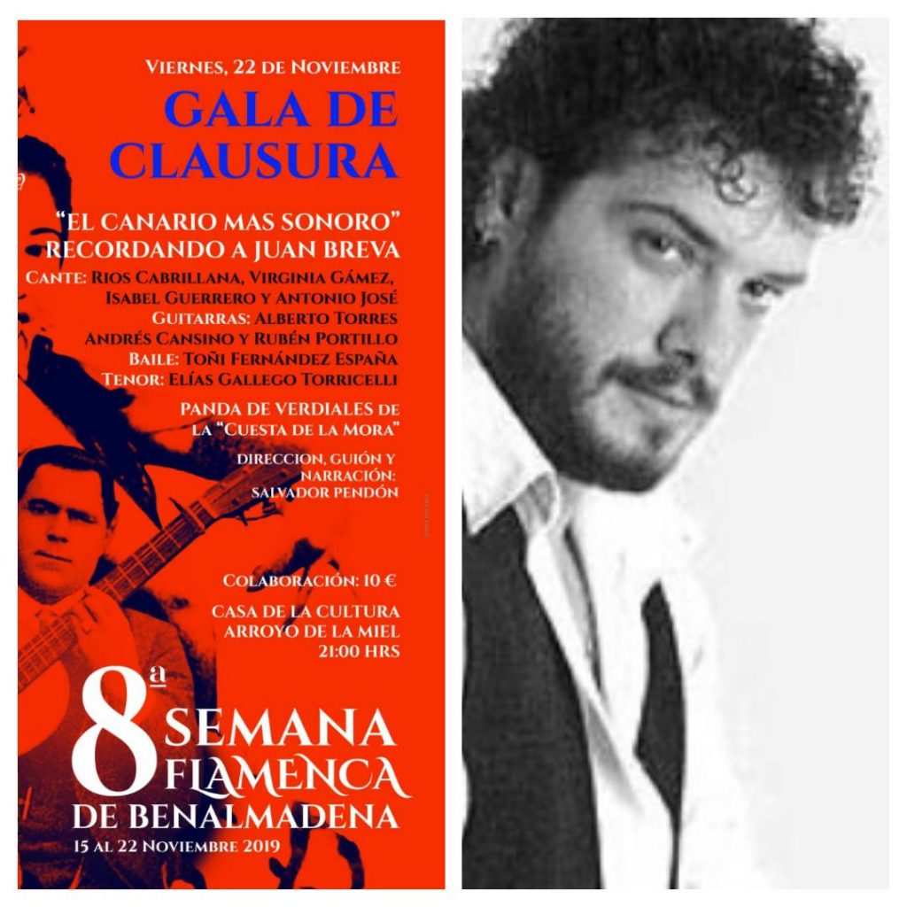 El espectáculo coral con el que se clausura el ciclo de Benalmádena es un homenaje al mítico Juan Breva, que se estrenó el pasado año en su Vélez-Málaga natal con motivo del centenario de su fallecimiento. Con dirección, guión y narración de Salvador Pendón, cuenta con Ríos Cabrillana, Virginia Gámez, Isabel Guerrero y Antonio José, al cante; Alberto Torres, Andrés Cansino y Rubén Portillo, a la guitarra; Toñi Fernández, al baile; Elías Gallego, como tenor; y la Panda de Verdiales de La Cuesta de la Mora.