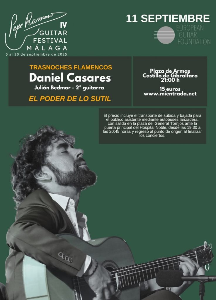 21.00 horas. IV Pepe Romero Guitar Festival Málaga. Plaza de Armas del Castillo de Gibralfaro. ‘El poder de lo sutil’, con Daniel Casares y Julián Bédmar como segunda guitarra.