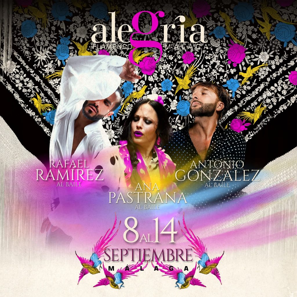 16.00, 18.00, 20.00 y 22.30 horas: Tablao Alegría de Málaga. Programación del 8 al 14 de septiembre: Rafael Ramírez, Ana Pastrana y Antonio González, al baile, y su cuadro.