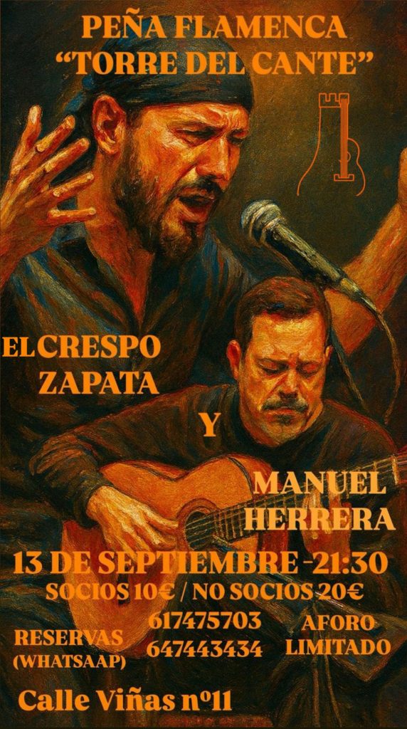 21.30 horas. Peña Torre del Cante de Alhaurín de la Torre. El Crespo Zapata, Hijo de El Cabrero, al cante, y Manuel Herrera, al toque.