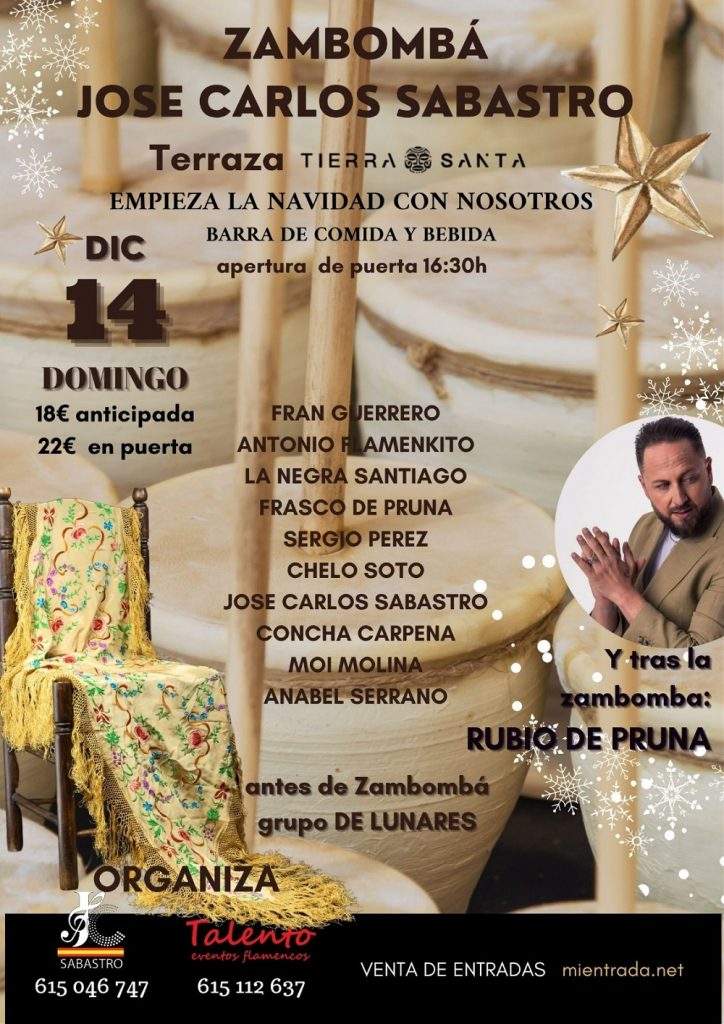 16.30 horas. Terraza Tierra Santa de Cártama. Zambomba José Carlos Sabastro, Grupo de Lunares y Rubio de Pruna.