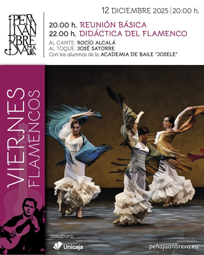 22.00 horas. Peña Juan Breva de Málaga. Rocío Alcalá, al cante, José Satorre, al toque, y alumnos de la Academia Josele, al baile.