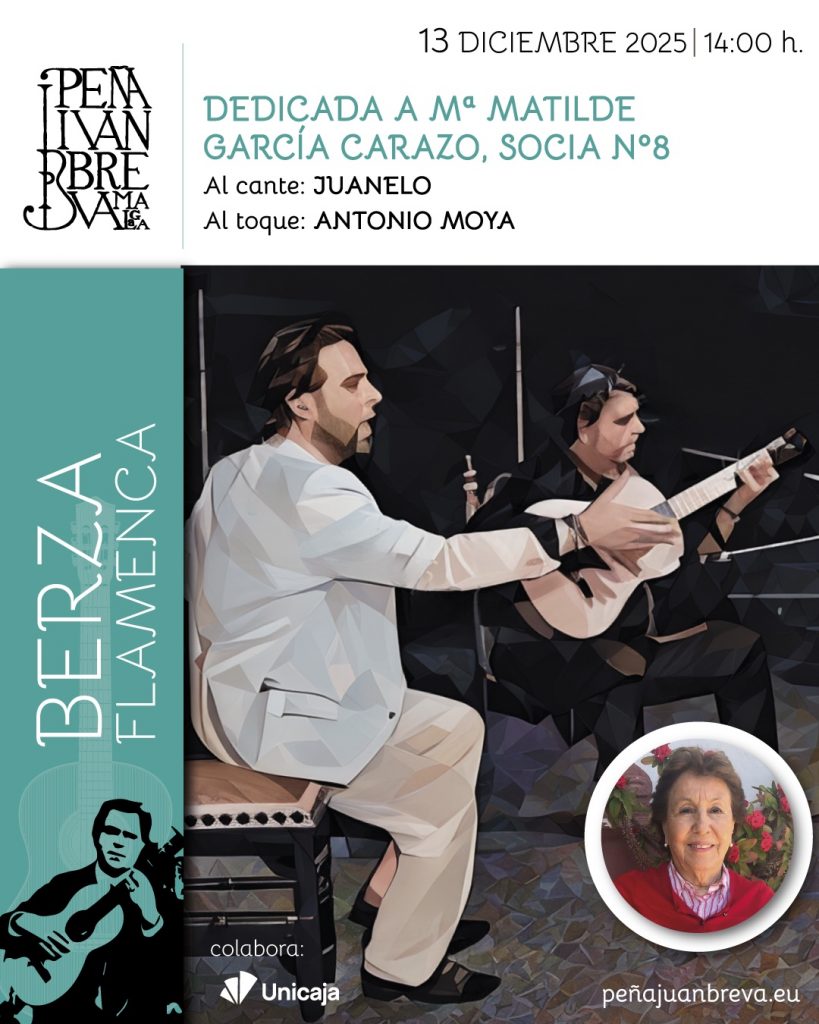 14.00 horas. Peña Juan Breva de Málaga. Berza Flamenca. Juanelo, al cante, y Antonio Moya, a la sonanta.