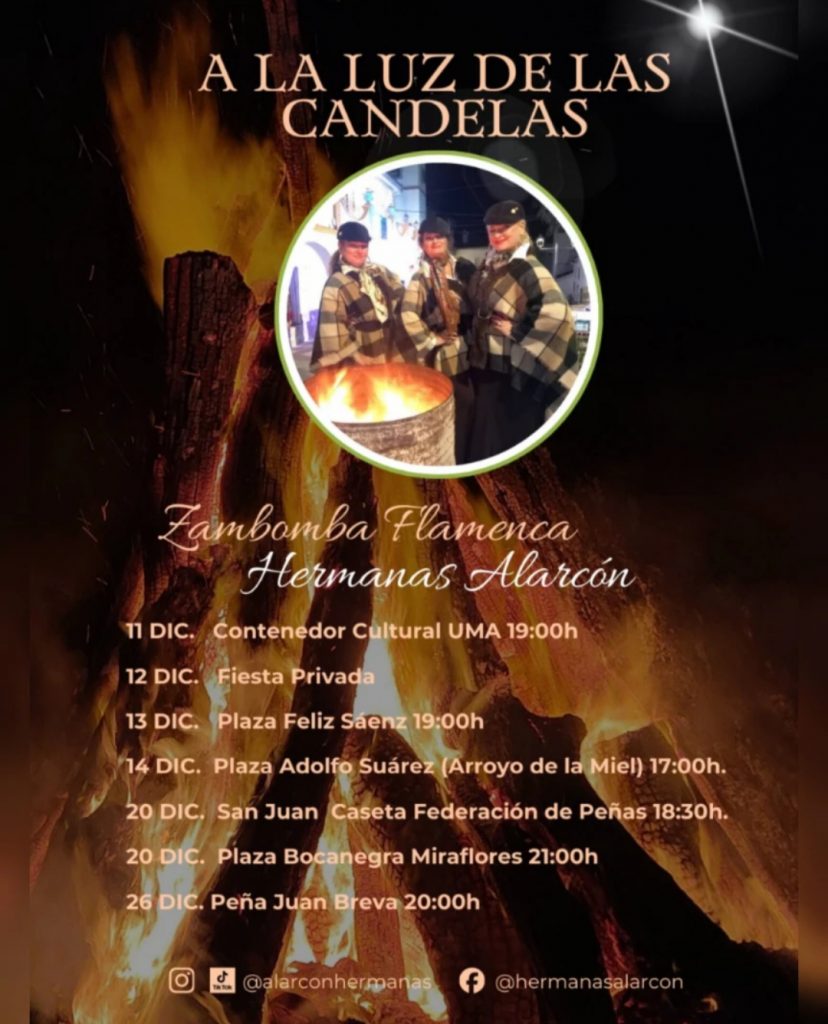 17.00 horas. Plaza Adolfo Suárez de Arroyo de la Miel – Benalmádena. ‘A la luz de las candelas’. Zambomba Flamenca de Las Hermanas Alarcón.
