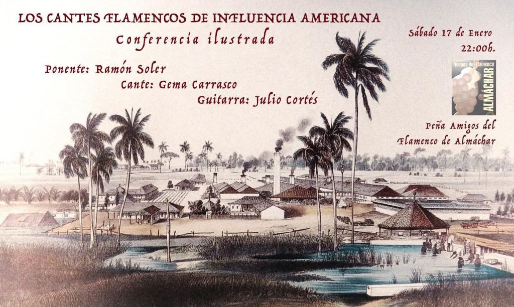 22.00 horas. Peña Amigos del Flamenco de Almáchar. Conferencia de Ramón Soler sobre ‘Los cantes flamencos de influencia americana’, ilustrada por Gema Carrasco, al cante, y Julio Cortés, a la bajañí.
