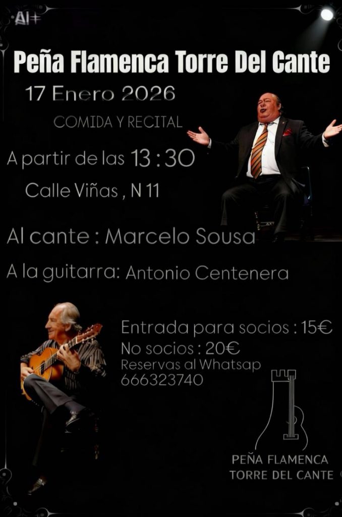 13.30 horas. Peña Torre del Cante de Alhaurín de la Torre. Comida y recital. Marcelo Sousa, al cante, y Antonio Centenera, a la sonanta.