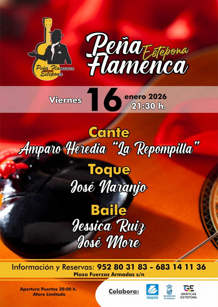 21.30 horas. Peña de Estepona. Jésica Ruiz h José More, al baile, Amparo Heredia, al cante, y José Naranjo, a la guitarra .