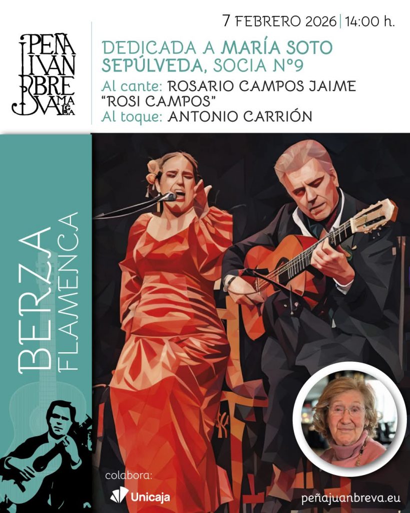 14.00 horas. Peña Juan Breva de Málaga. Berza Flamenca. Rosi Campos, al cante, y Antonio Carrión, a la sonanta.