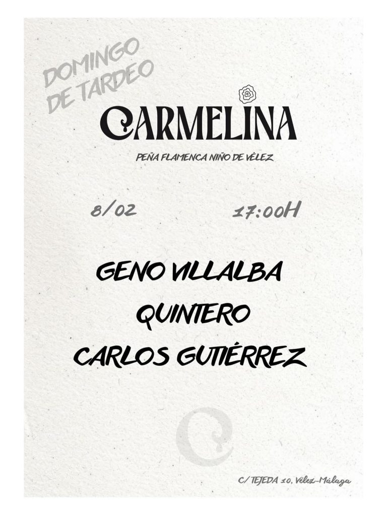 17.00 horas. Carmelina. Peña Niño de Vélez de Vélez Málaga. Geno Villalba, Quintero y Carlos Gutiérrez.