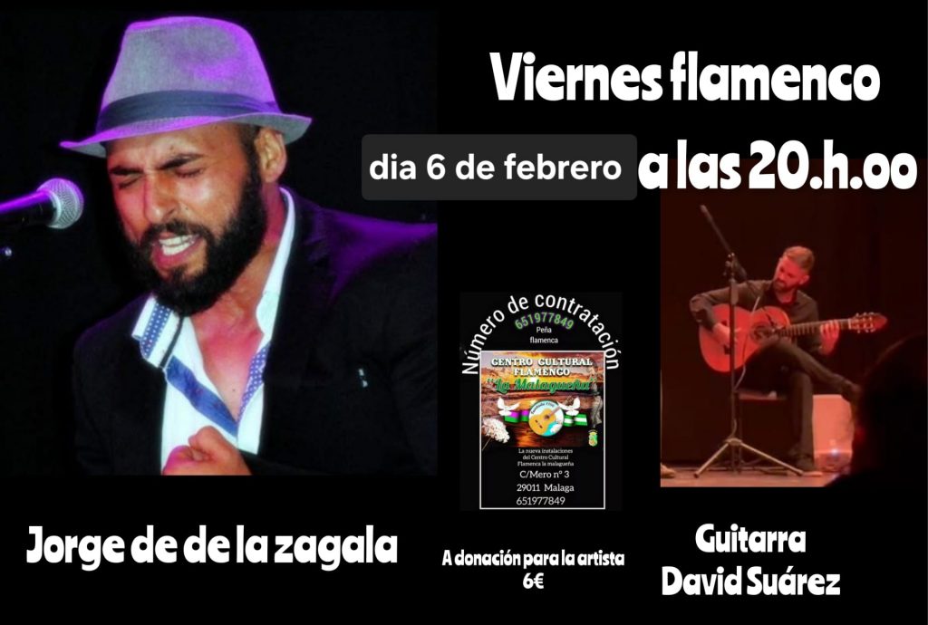 20.00 horas. Centro Cultural Flamenco La Malagueña de Málaga. Jorge de la Zagala, al cante, y David Suárez, a la guitarra.
