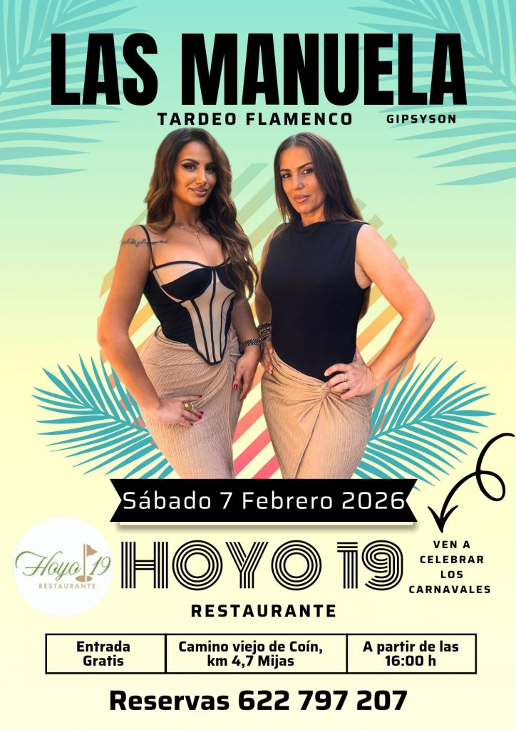 16.00 horas. Restaurante Hoyo 19 de Las Lagunas de Mijas. Las Manuela Gipsyson.