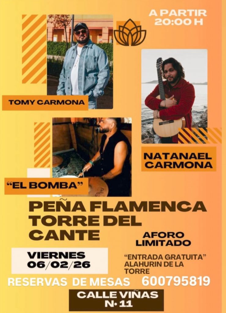 20.00 horas. Peña Torre del Cante de Alhaurín de la Torre. Tomy Carmona, al cante, Natanael Carmona, al toque, y El Bomba, a la percusión.