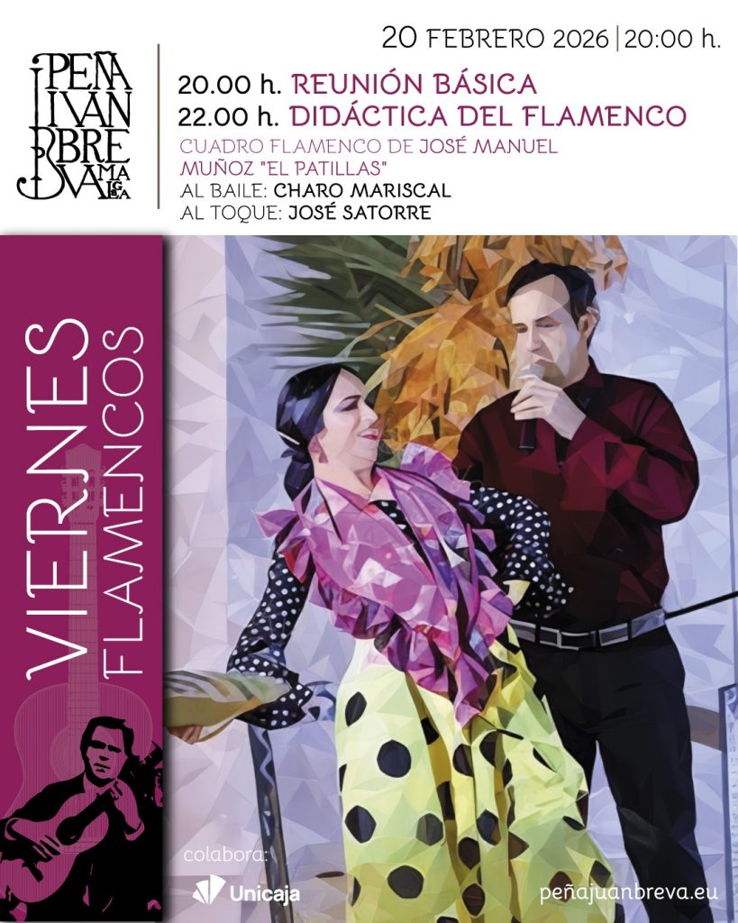 22.00 horas. Peña Juan Breva de Málaga. Cuadro Flamenco de José Manuel Muñoz El Patillas, con José Satorre, al toque, y Charo Mariscal, al baile.
