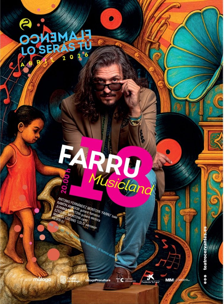 20.00 horas. Teatro Cervantes de Málaga. Ciclo ‘Flamenco lo serás tú’. Farru presenta su espectáculo ‘Musicland’, con el bailaor y coreógrafo sevillano, al baile, Juanma Montoya, a la guitarra eléctrica, Ramón Amador, a la guitarra flamenca, Ezequiel Montoya, al cante, Manuel Lozano Lolo, a la percusión, y DJ Kilian.