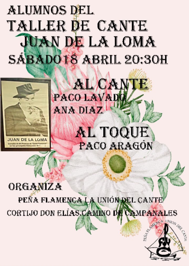 20.30 horas: Peña Unión del Cante de Fuengirola-Mijas. Actuación de los alumnos del Taller de Cante y Guitarra Juan de La Loma, con Paco Lavado y Ana Díaz, al cante, y Paco Aragón, al toque.