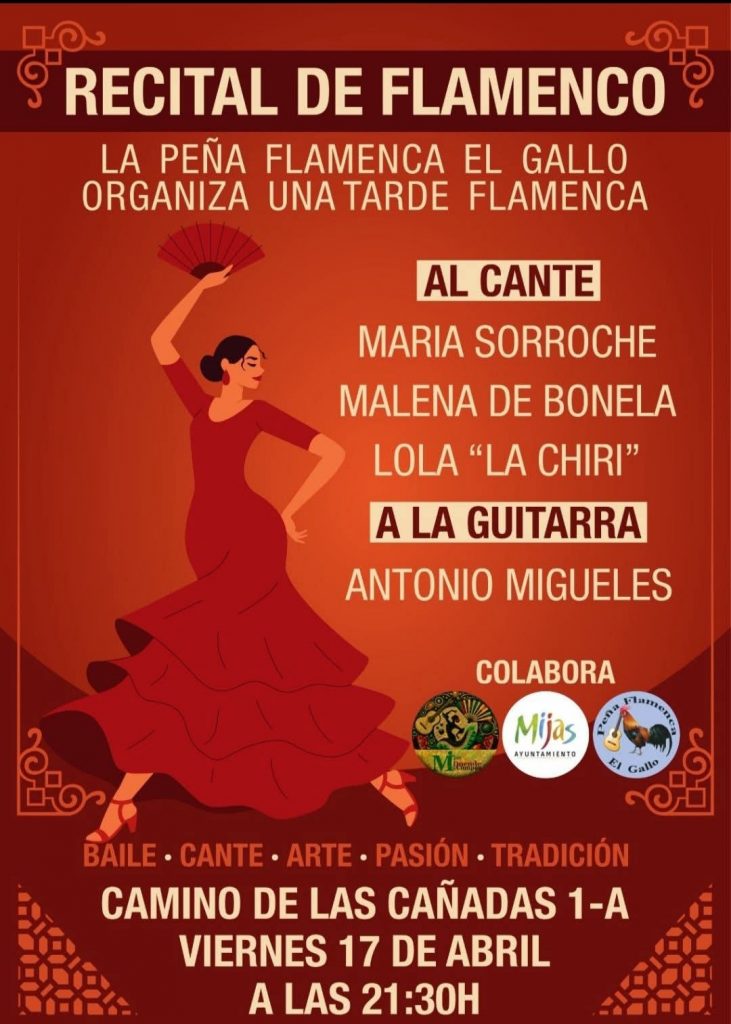 21.30 horas. Peña El Gallo de Las Lagunas de Mijas. María Sorroche, Malena de Bonela y Lola La Chiri, al cante, y Antonio Migueles, a la guitarra.