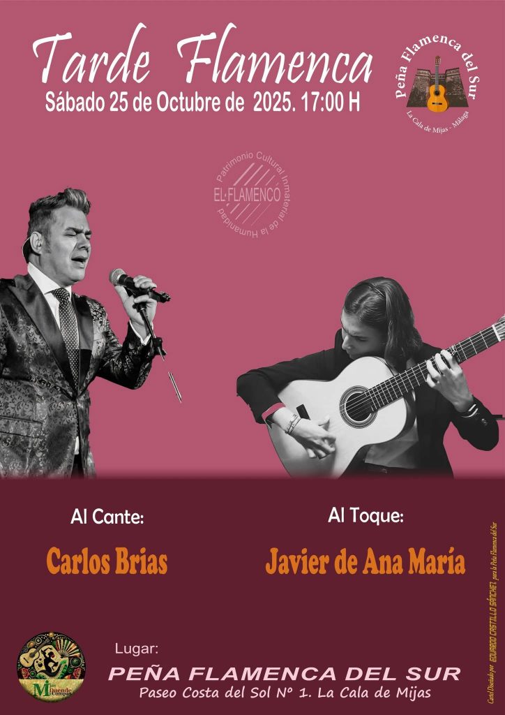 17.00 horas. Peña del Sur de La Cala de Mijas. Carlos Brías, al cante, y Javier de Ana María, a la guitarra.
