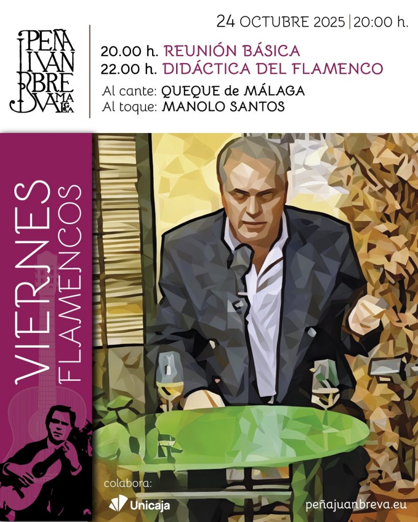 22.00 horas. Peña Juan Breva de Málaga. Quequé de Málaga, al cante, y Manolo Santos, al toque.