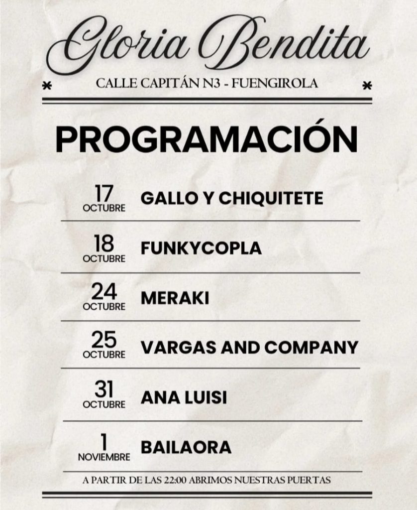 22.00 horas. Gloria Bendita Fuengirola. Meraki.