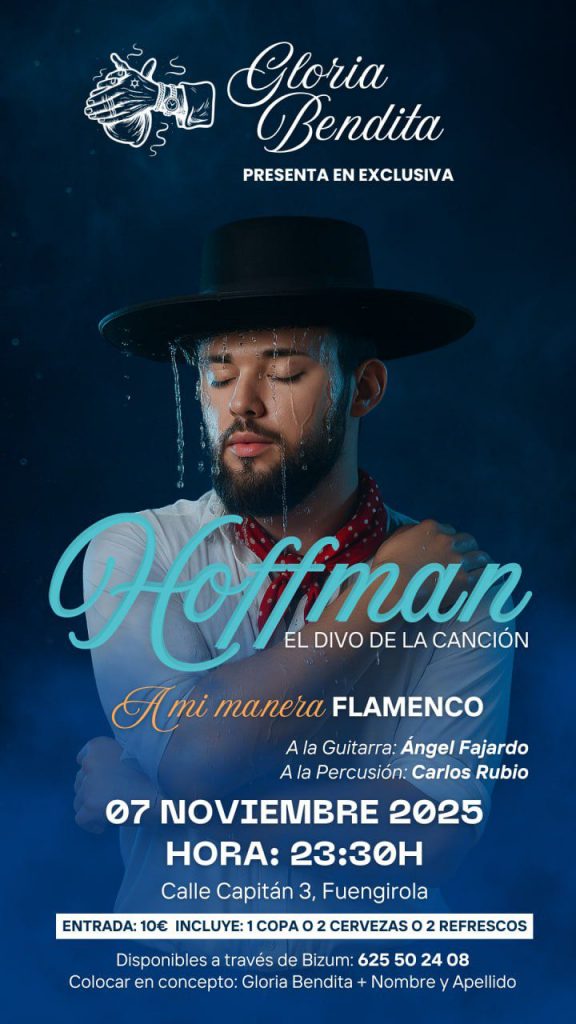 23.30 horas. Gloria Bendita Fuengirola. Hoffman, el divo de la canción. ‘A mí manera, Flamenco’, con Ángel Fajardo, a la guitarra, Carlos Rubio, a la percusión.