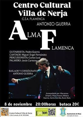 20.00 horas. Centro Cultural Villa de Nerja. Antonio Guerra y su compañía flamenca presenta su espectáculo ‘Alma Flamenca’.