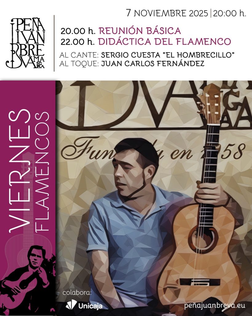 22.00 horas. Peña Juan Breva de Málaga. Sergio Cuesta El Hombrecillo, al cante, y Juan Carlos Fernández, al toque.