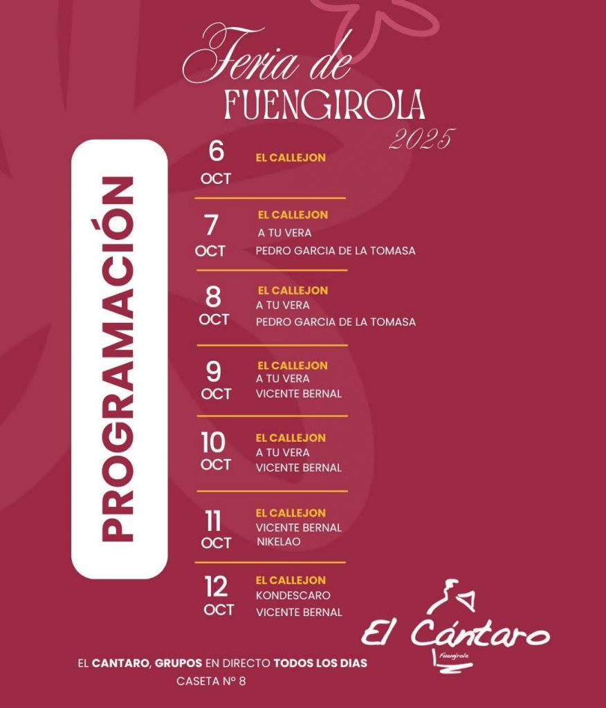 16.00 horas. Feria de Fuengirola. Caseta de la Peña El Cántaro. El Callejón, A Tu Vera y Vicente Bernal.