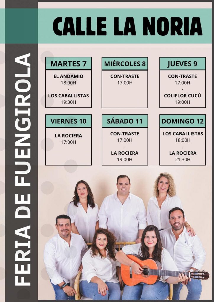 17.00 horas. Feria de Fuengirola. Caseta Con-Traste. 19.00 horas. Caseta La Rociera. Calle La Noria.