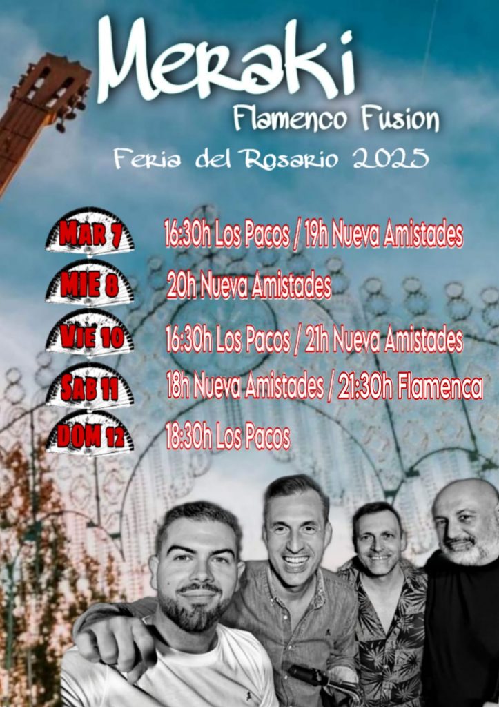 18.00 horas. Feria de Fuengirola. Caseta de Los Pacos. 21.30 horas. Caseta de la Peña Unión del Cante de Fuengirola-Mijas. Meraki.