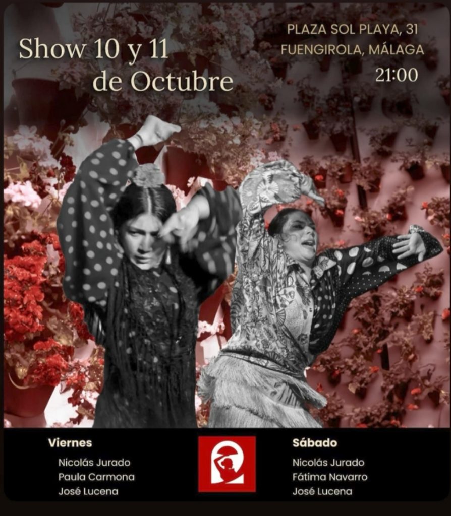 16.00, 18.00, 20.00 y 22.30 horas: Tablao Alegría de Málaga. Programación del 6 al 12 de octubre: Cristina Soler y Daniel Navarro, al baile, y su cuadro.