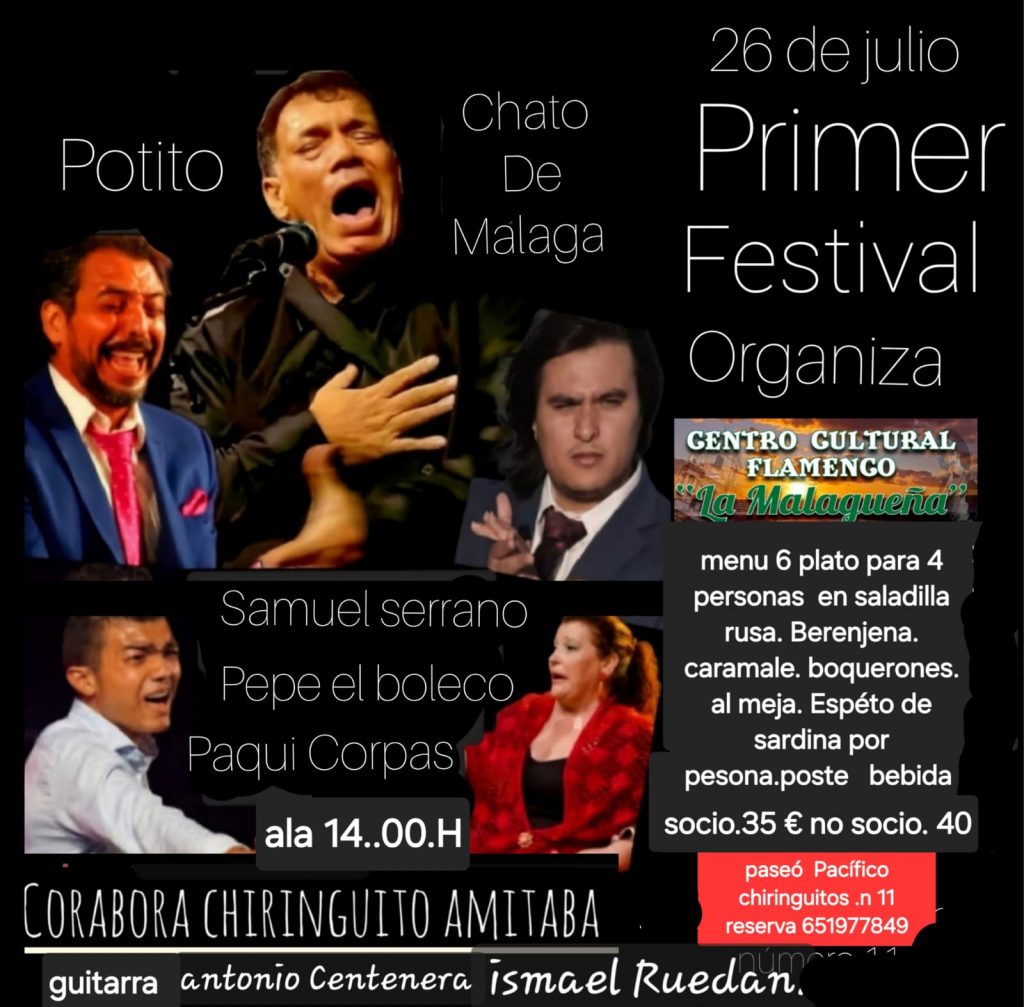 14.00 horas. Chiringuito 11 Amitabha de Málaga. I Festival del Centro Cultural Flamenco La Malagueña. Potito, Samuel Serrano, El Boleco, Chato de Málaga y Paqui Corpas, al cante, y Antonio Centenera e Ismael Rueda, al toque.