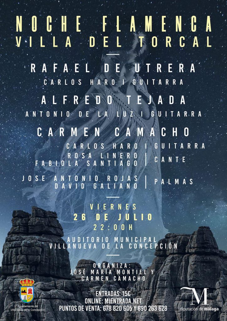 22.00 horas. Auditorio Municipal de Villanueva de la Concepción. Rafael de Utrera y Alfredo Tejada, al cante, Carlos Haro y Antonio de la Luz, a la guitarra, y Carmen Camacho y su cuadro, al baile.