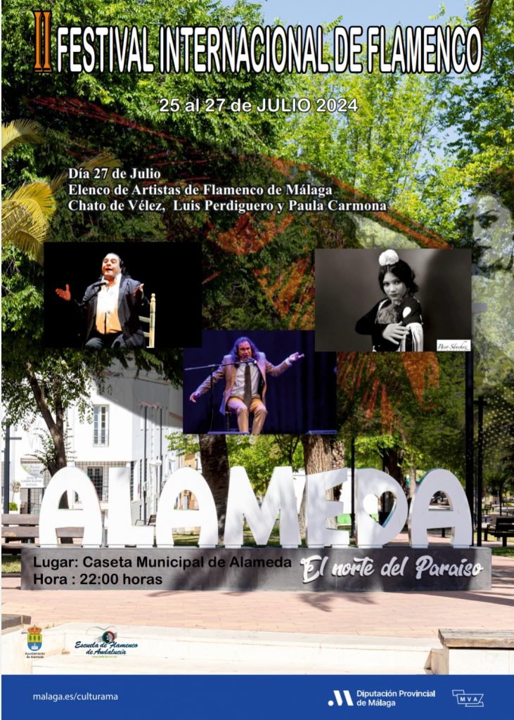 22.00 horas. Caseta Municipal de Alameda. II Festival Internacional de Flamenco. Chato de Vélez y Luis Perdiguero, al cante, y Paula Carmona, al baile.