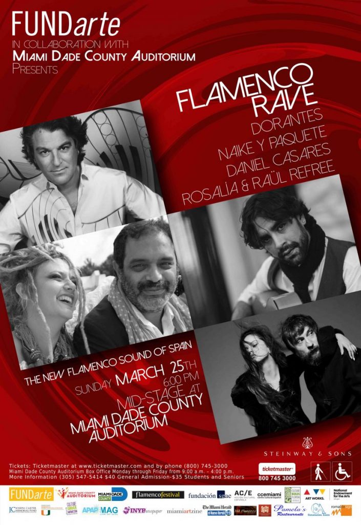 Los organizadores del Flamenco Festival de Londres y Nueva York llevan a Miami ‘Flamenco Rave’, con Dorantes, Daniel Casares, Naike y Paquete, Rosalía y Raül Refree en el cartel. La cita es el domingo 25 de marzo en el Miami Dade County Auditorium.