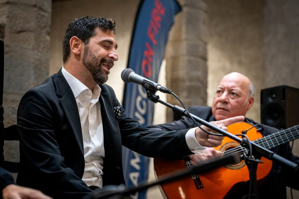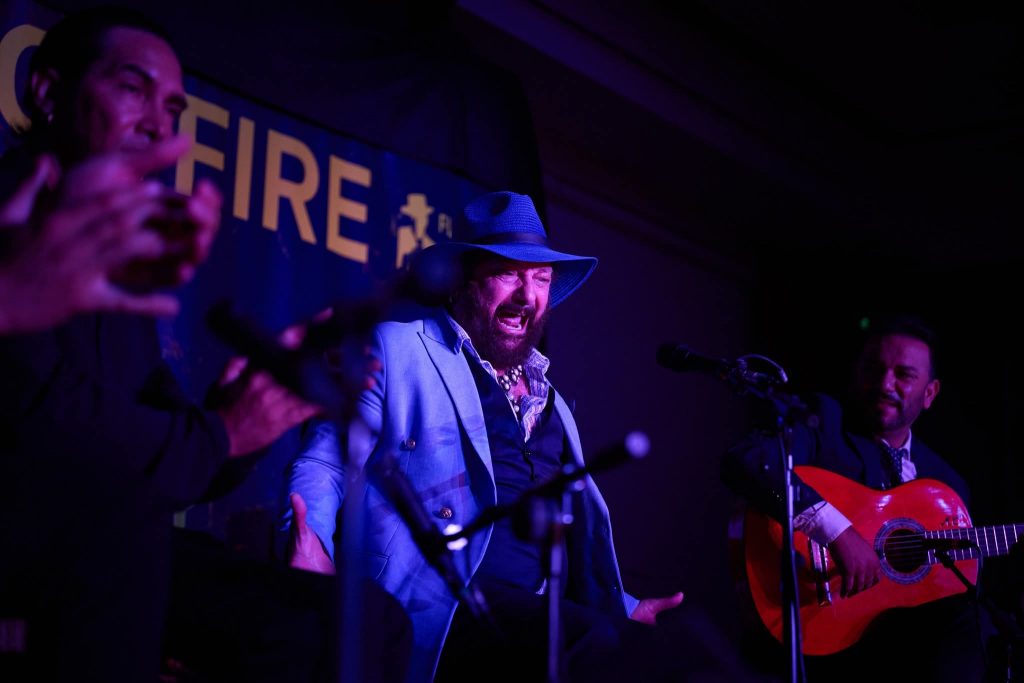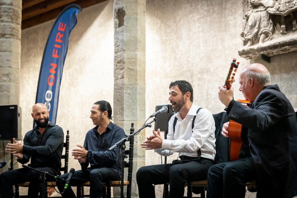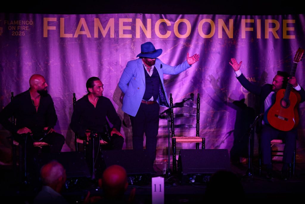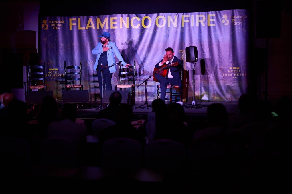 XII Festival Flamenco On Fire de Pamplona. Cante: Agujetas Chico y Duquende. Guitarra: Domingo Rubichi y Julio Romero. Palmas: Cristóbal Santiago y El Pescao. Baile: Beatriz Morales. Lugar: Escenario Sabicas Civivox Condestable y Hotel Tres Reyes de Pamplona. Día: Miércoles, 27 de agosto de 2025. Aforo: Lleno.