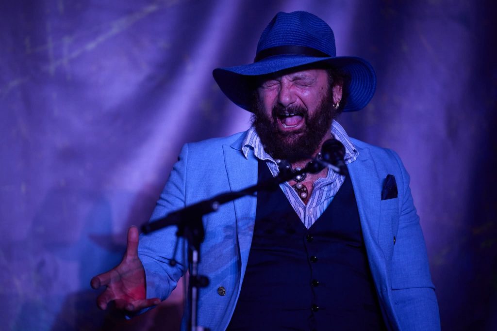 Antonio Agujetas Chico y Domingo Rubichi comenzaron por tientos en la calurosa y lluviosa tarde del 27 de agosto en el Civivox Condestable. «Viva la lluvia y viva el bochorno», espetó el jerezano nada más comenzar. Tuvo que quitarse la chaqueta al terminar el primer cante. El patio, repleto de gente, sillas ocupadas, alrededor en pie, asomadas en la primera y segunda planta. Antonio, que recuerda su estirpe en sus formas: su forma de entonar los cantes, de arrancarse, su forma de mover el cuerpo, incluso cerrando los ojos se acuerda de dónde viene.