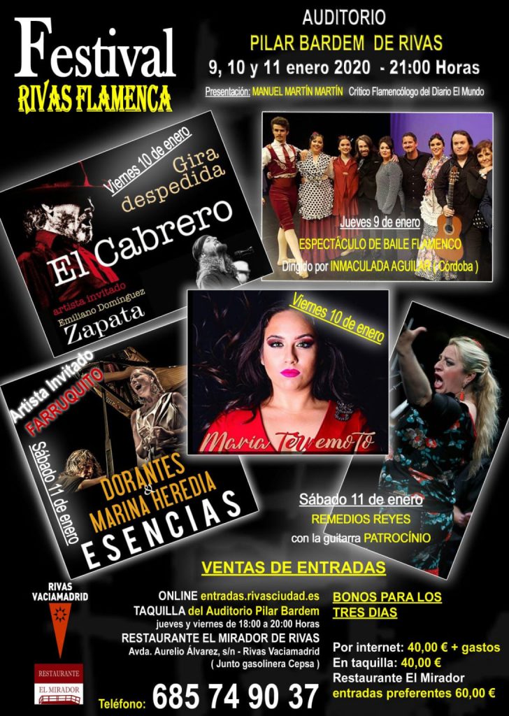 El Cabrero, Dorantes, Marina Heredia y María Terremoto serán los platos fuertes del Festival Flamenco de Rivas Vaciamadrid, que se desarrollará a lo largo de tres días, del 9 al 11 de enero, con Manuel Martín Martín como maestro de ceremonias, en el Auditorio Pilar Bardem.