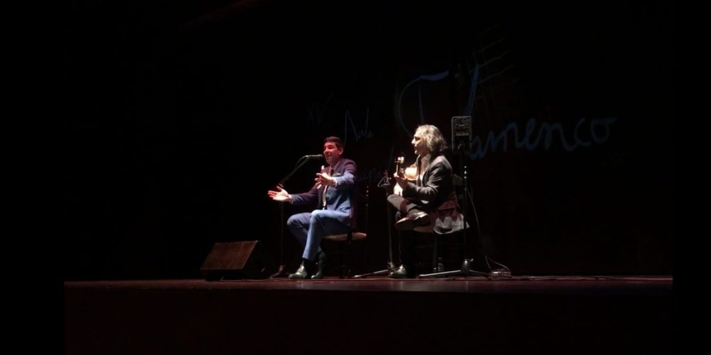 XV Aula Municipal de Flamenco 2018. Cante: Francisco Blanco ‘El Calerito’ y Marina Badía. Guitarra: Curro de María. Día: Lunes, 28 de mayo de 2018. Lugar: Centro Cultural Provincial de C/ Ollerías (Málaga). Aforo: Lleno.