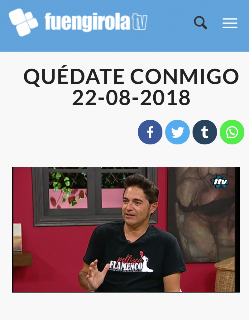 Francisco Reina, editor de la Revista Pellizco Flamenco, continuó anoche su sección sobre flamenco en el programa ‘Quédate conmigo’, que conduce Pedro Espín en Fuengirola TV, de la mano de Mariló Galdeano. En ella abordó el espectáculo ‘Grito pelao’, de Rocío Molina, en el Teatro Cervantes de Málaga, y la actuación de Luisa Chicano en la Peña Flamenca Juan Breva durante la feria de la capital malagueña.